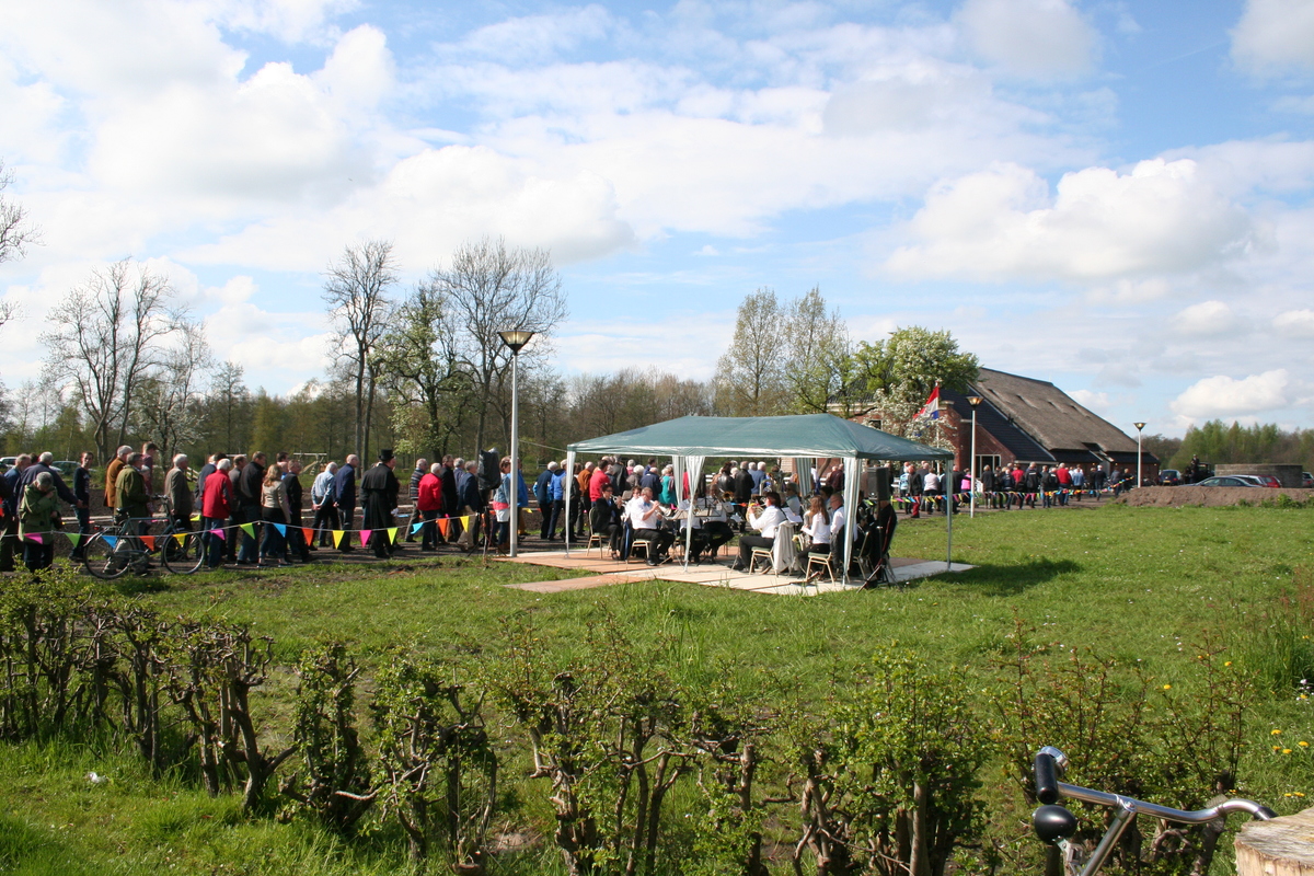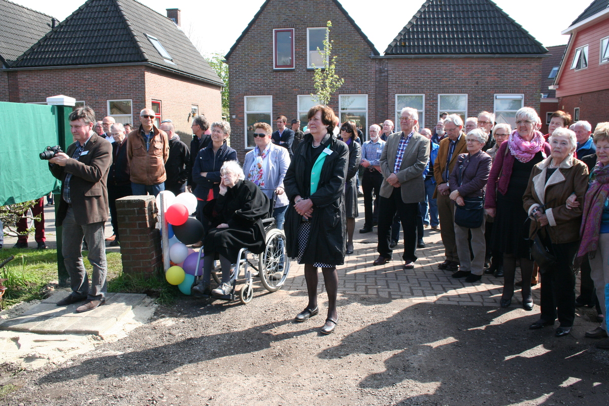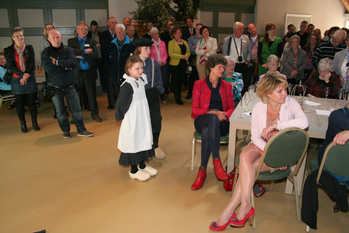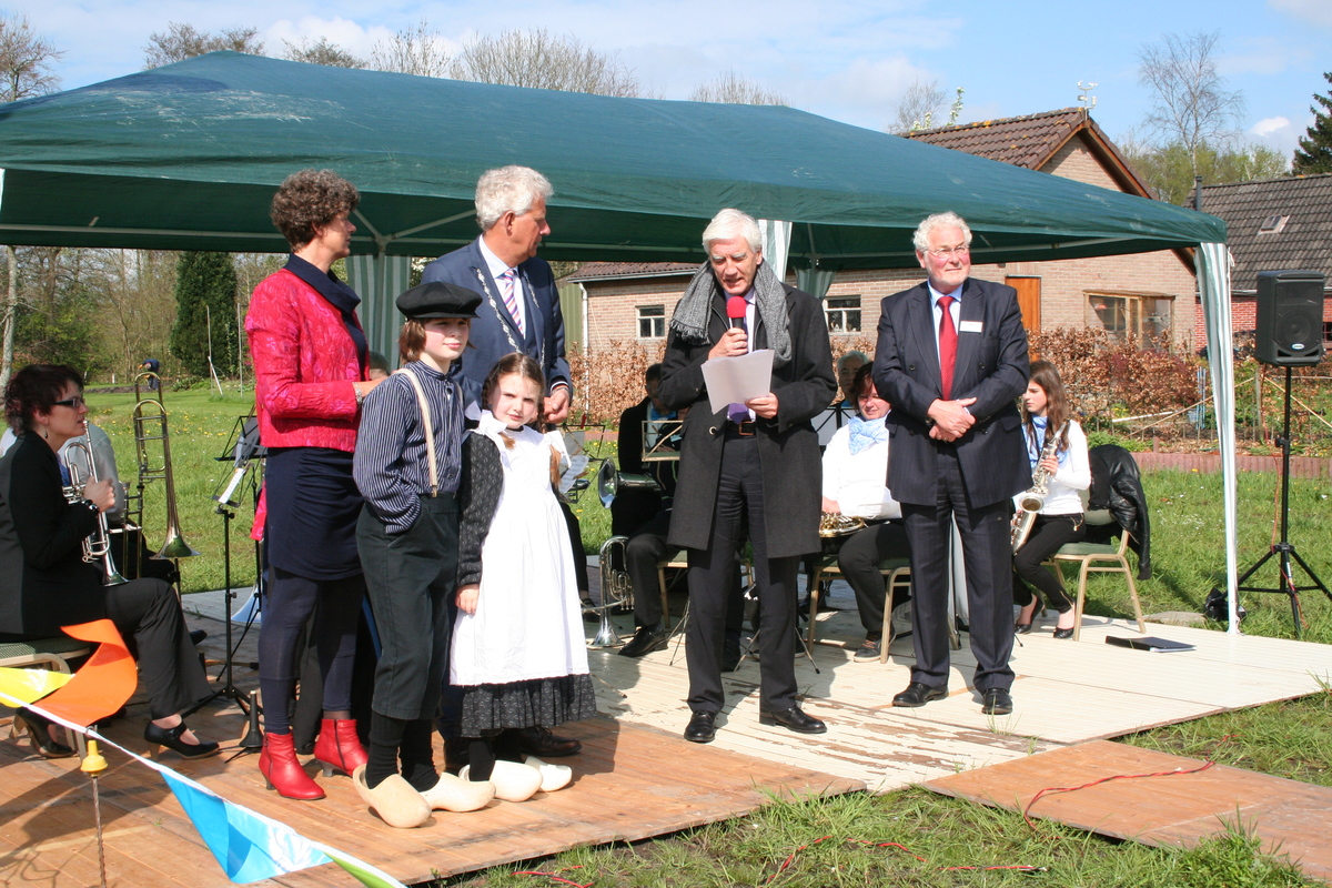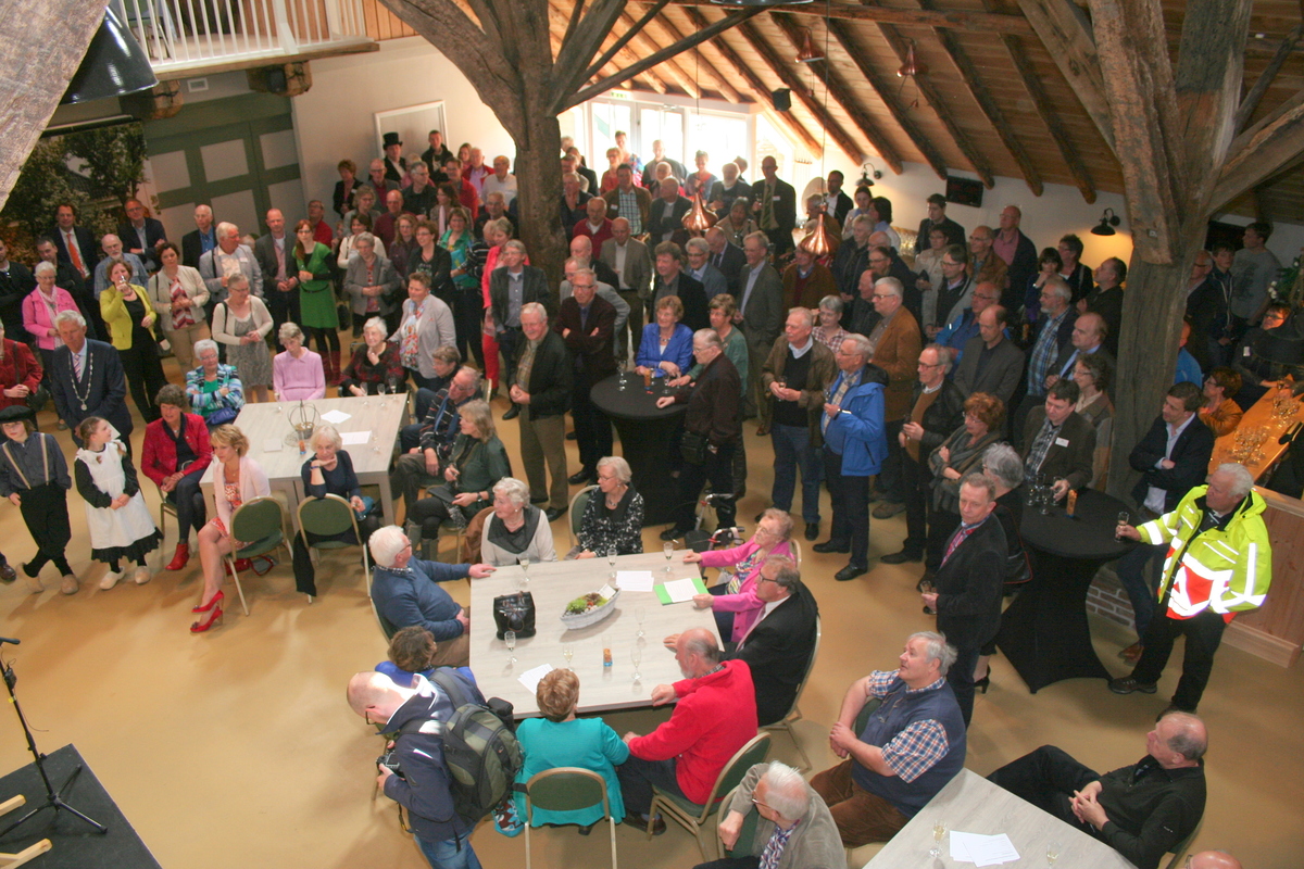 stralende zon, een blauwe lucht, bloeiende perenbomen, ziedaar het decor voor de officiële opening van de CazemierBoerderij op vrijdag 11 april 2014. In afwachting van de komende gebeurtenissen had een groot aantal genodigden zich verzameld voor de boerderij, terwijl muziekvereniging De Woldhoorn voor een gezellige sfeer zorgde.