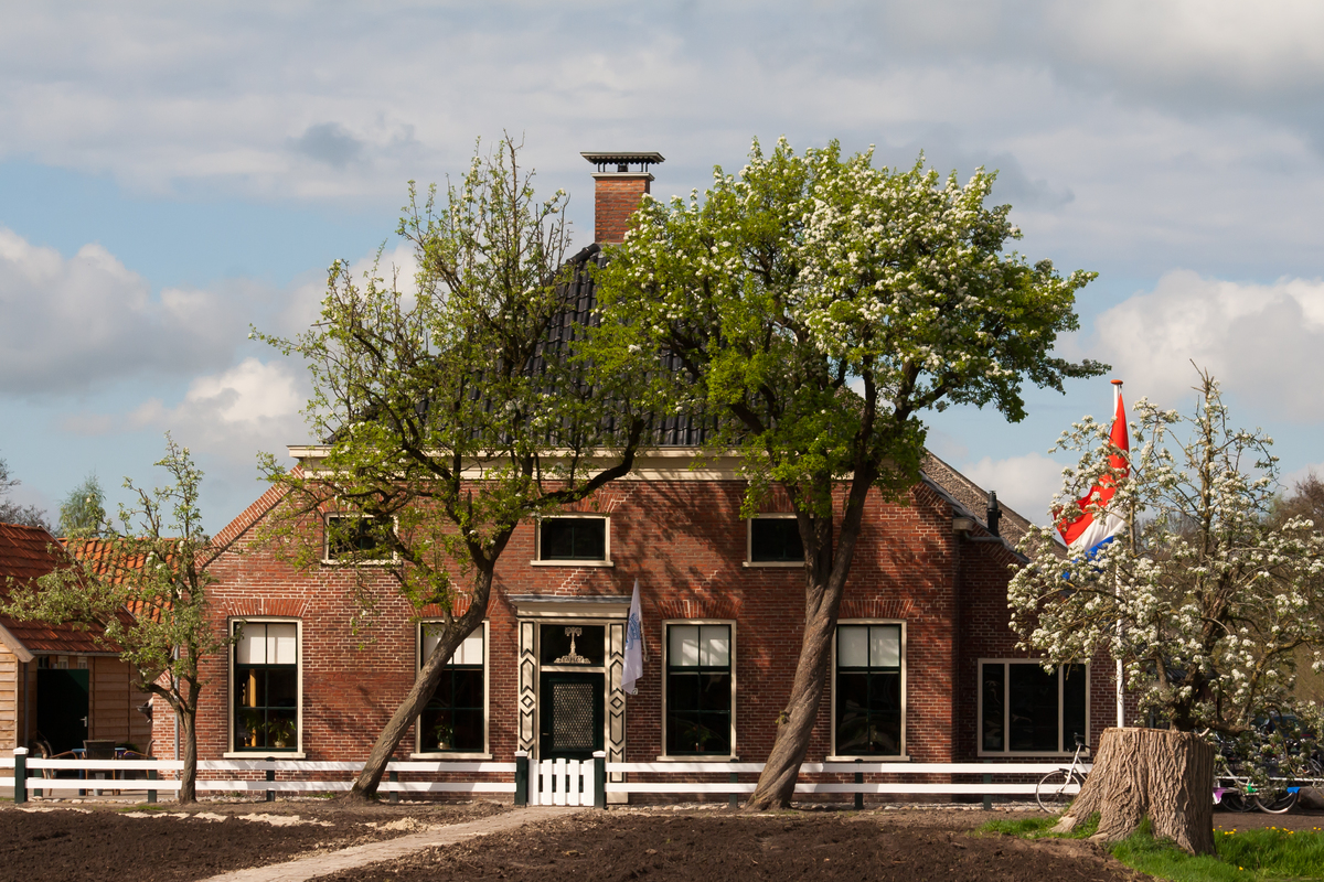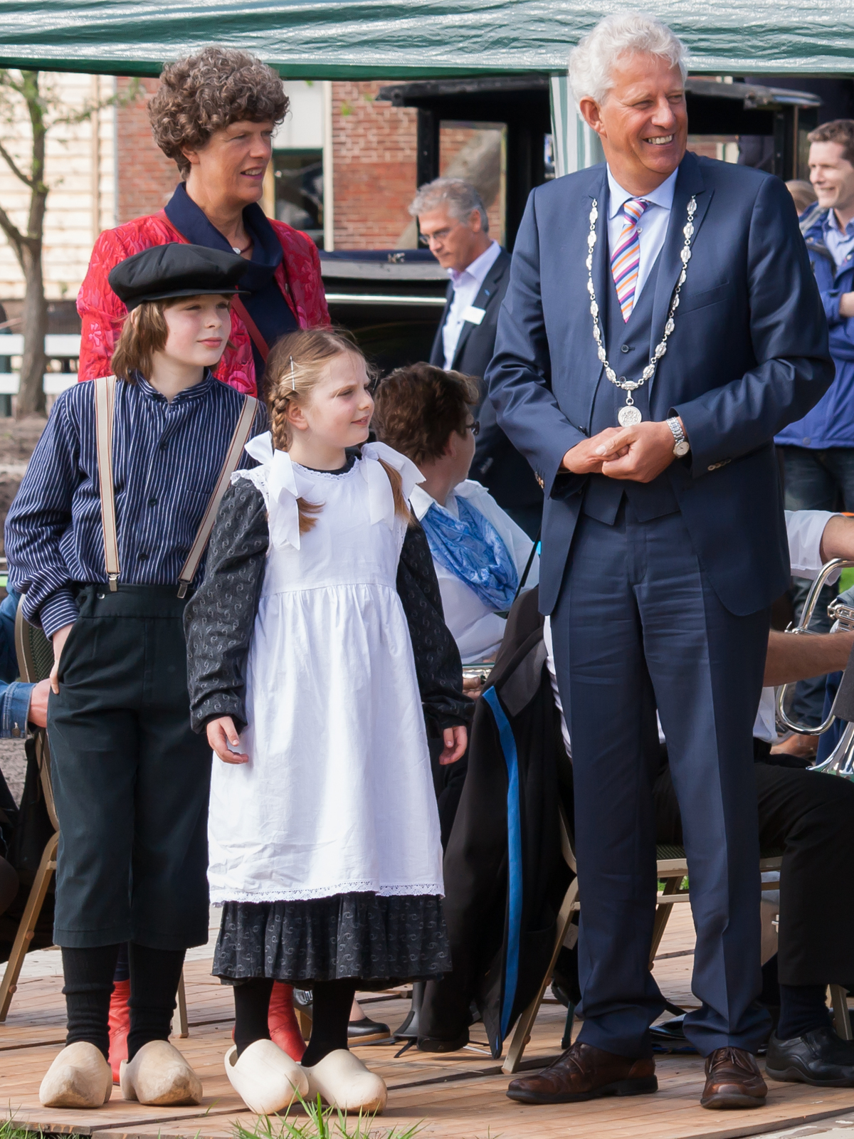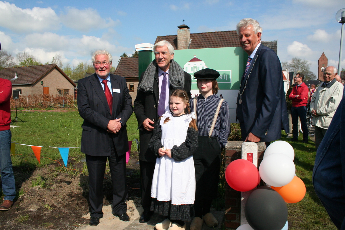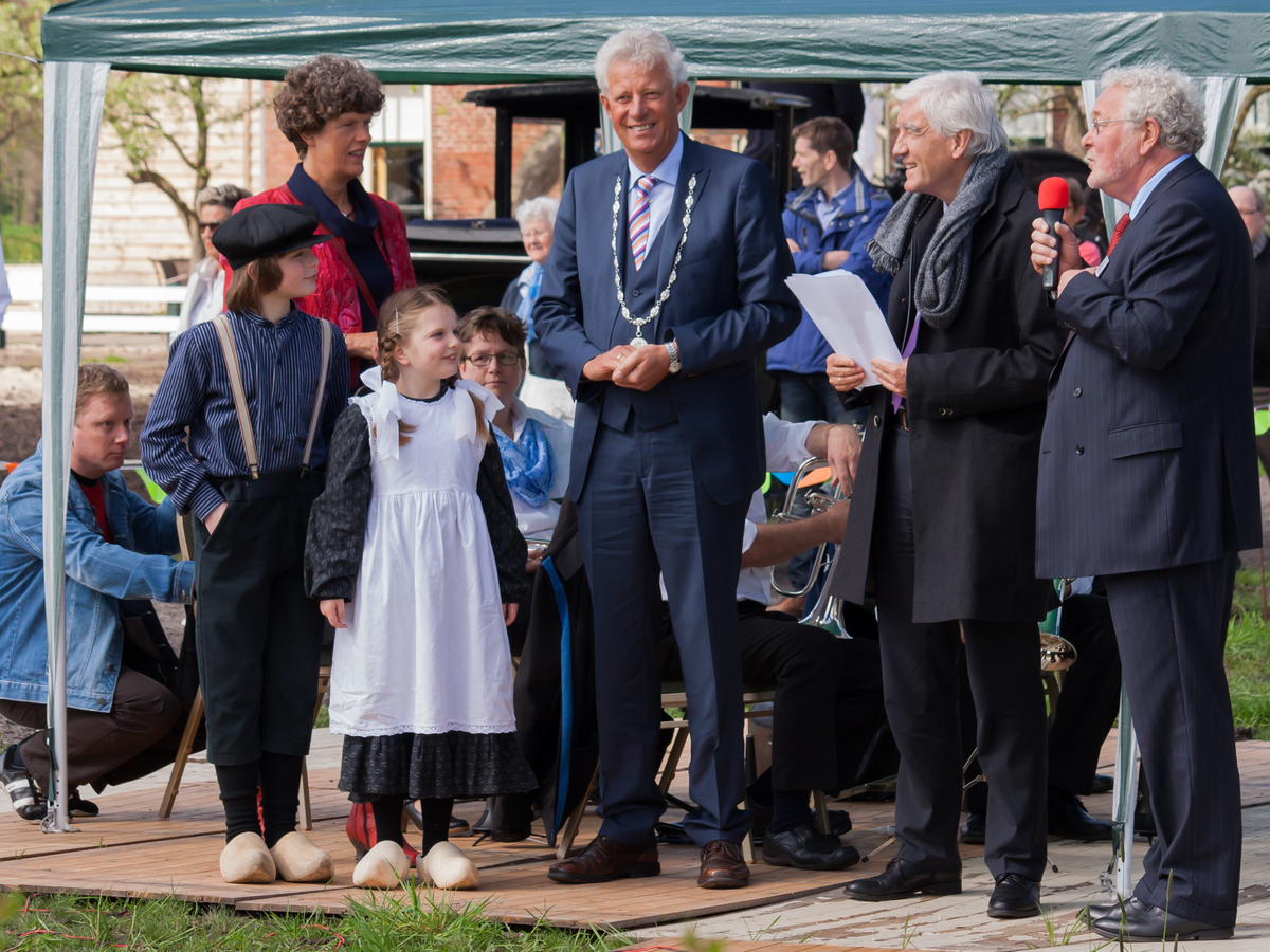 stralende zon, een blauwe lucht, bloeiende perenbomen, ziedaar het decor voor de officiële opening van de CazemierBoerderij op vrijdag 11 april 2014. In afwachting van de komende gebeurtenissen had een groot aantal genodigden zich verzameld voor de boerderij, terwijl muziekvereniging De Woldhoorn voor een gezellige sfeer zorgde.