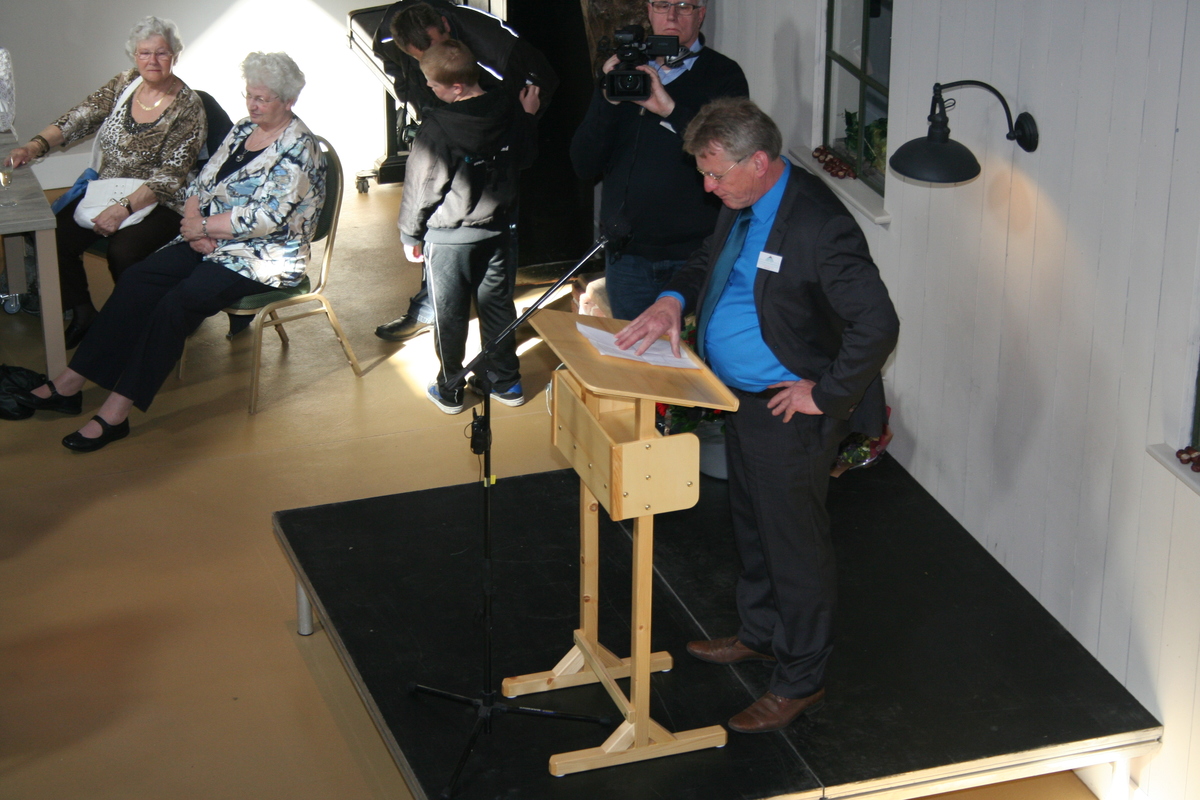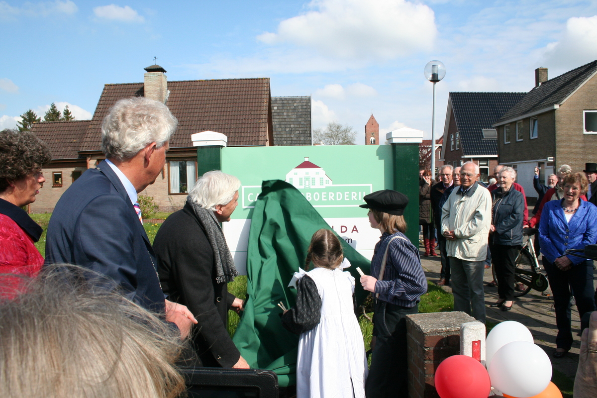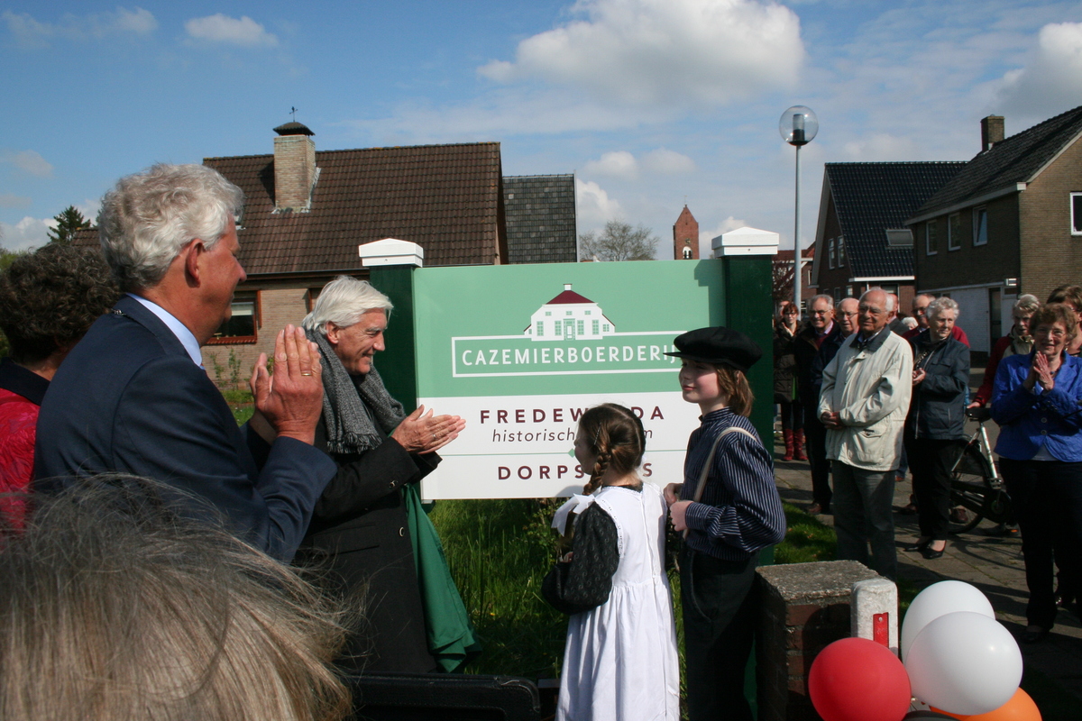 De Commissaris van de Koning de heer Max van den Berg had de eer het bord te onthullen met het logo van de CazemierBoerderij, waarbij mooie woorden werden gesproken. Er is grote waardering voor het initiatief en de volharding waarmee het boerderijproject is uitgevoerd. In een tijd dat veel dorpshuizen worden gesloten heeft Tolbert, in casu Stichting Oudheidkamer Fredewalda het dorpshuis een nieuwe plaats in de samenleving gegeven in de CazemierBoerderij. Met hulp van veel vrijwilligers is deze gigantische klus geklaard. “Het dorp mag met recht trots zijn op deze prachtige boerderij”, aldus de heer Max van den Berg.