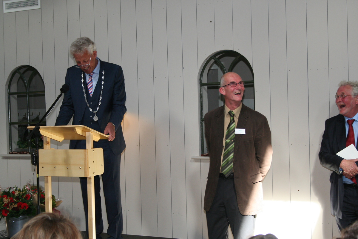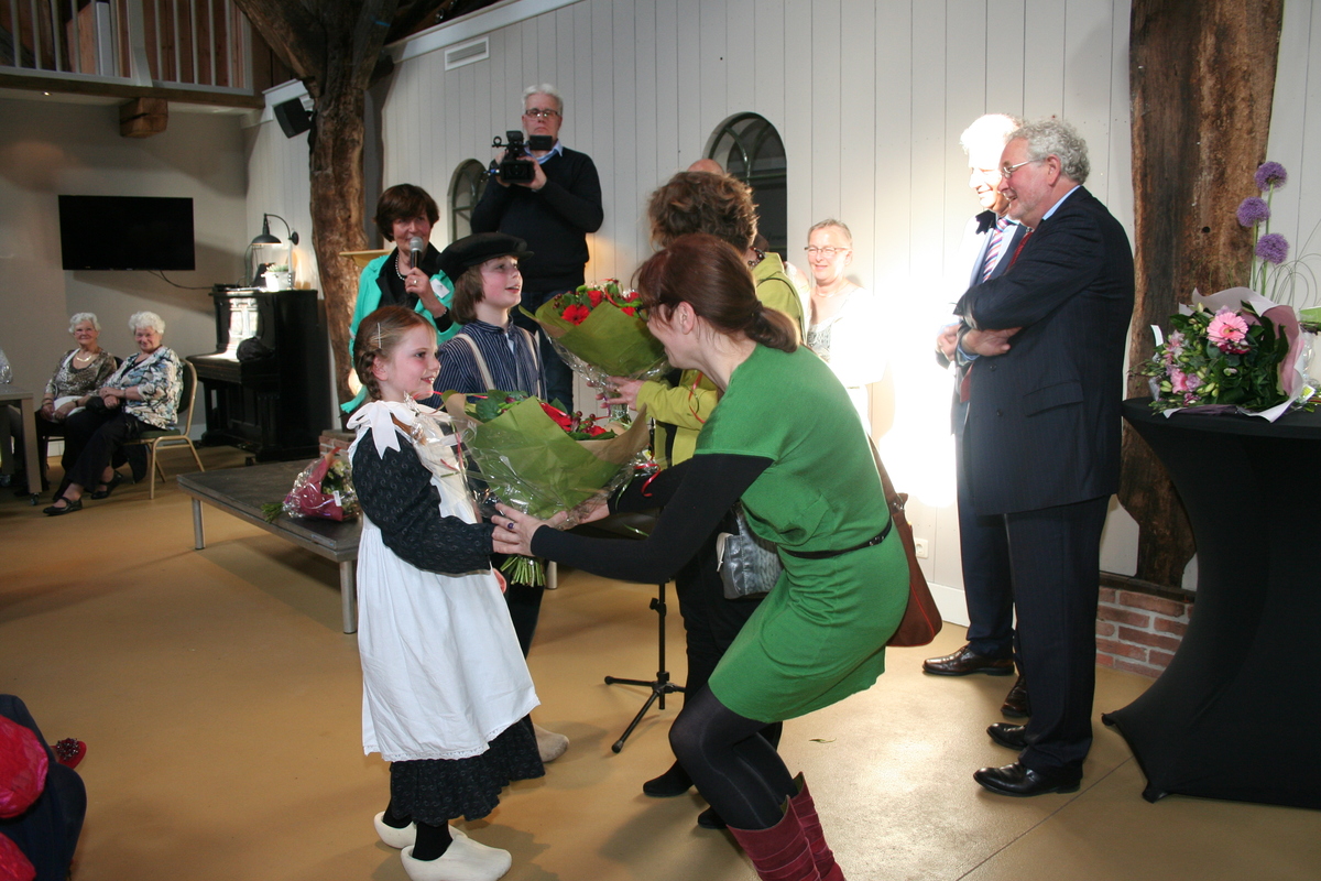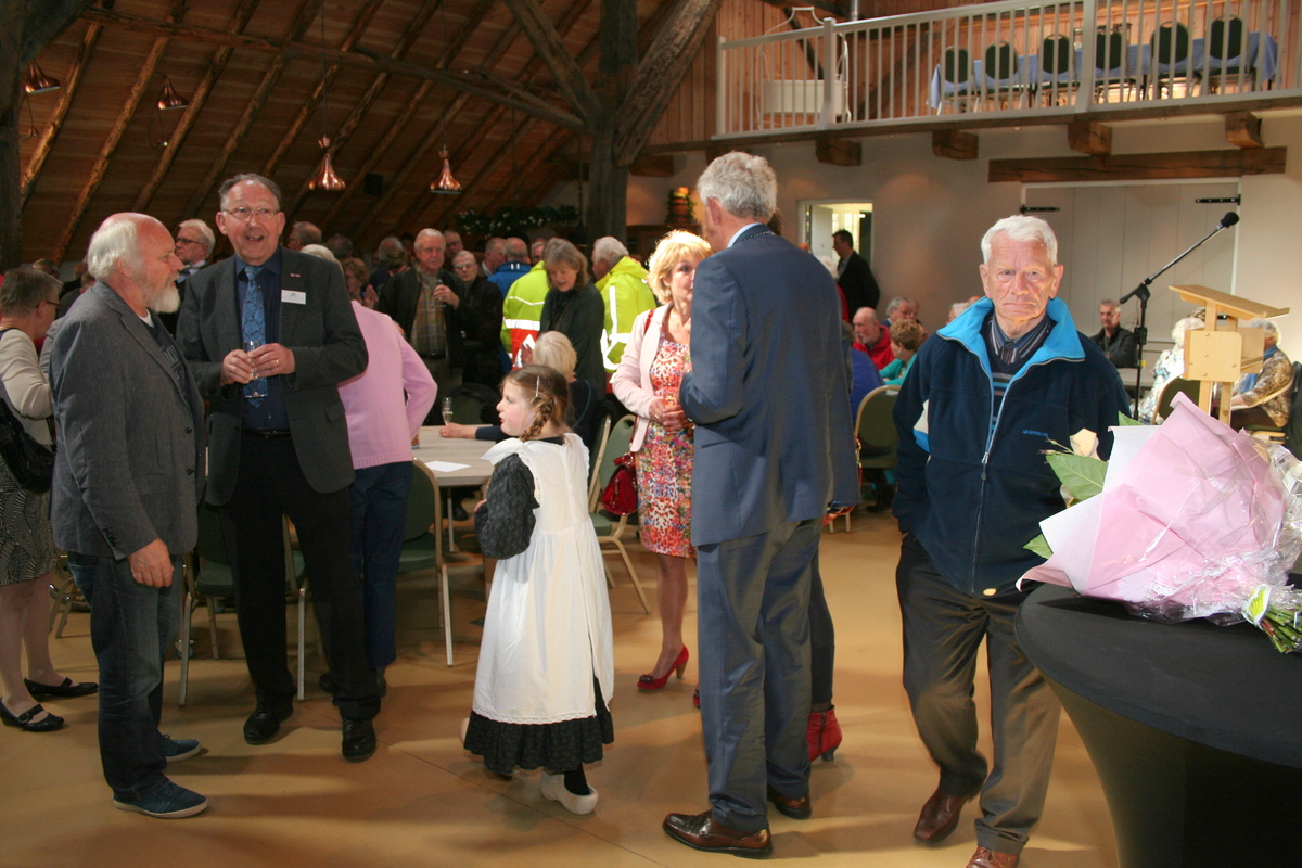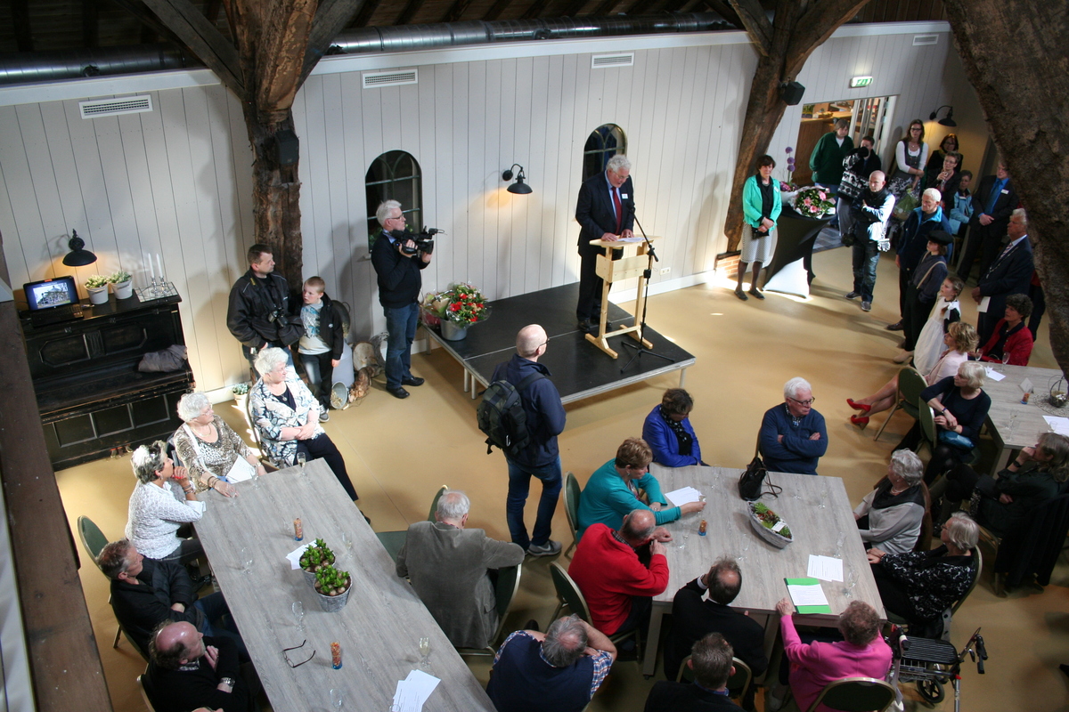 Binnen werd het programma voortgezet met nog meer mooie woorden, de presentatie van het nieuwe boek van Catrien Veeze-Postmus “De mensen die er woonden”, en een verrassing: een Koninklijke Onderscheiding voor Simon Riepma, de penningmeester van Stichting Oudheidkamer Fredewalda en de aanjager van het boerderijproject. Opnieuw mooie woorden, deze keer van burgemeester Berend Hoekstra van Leek.