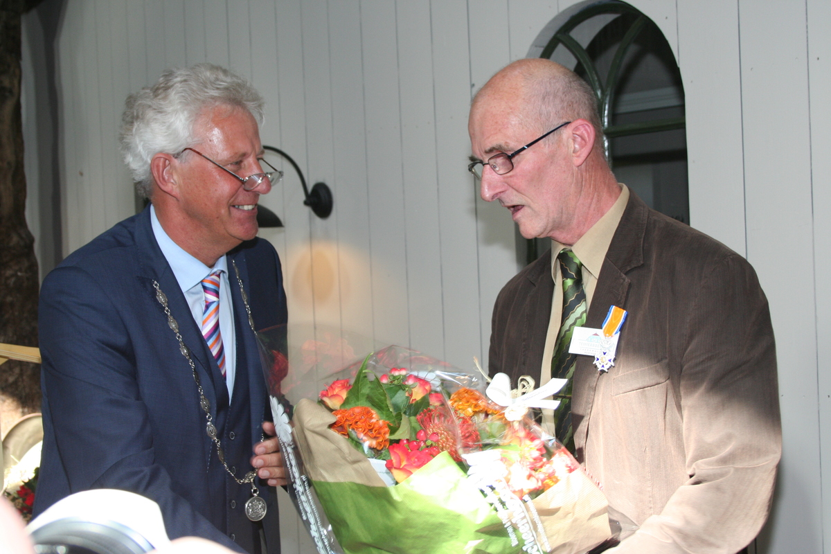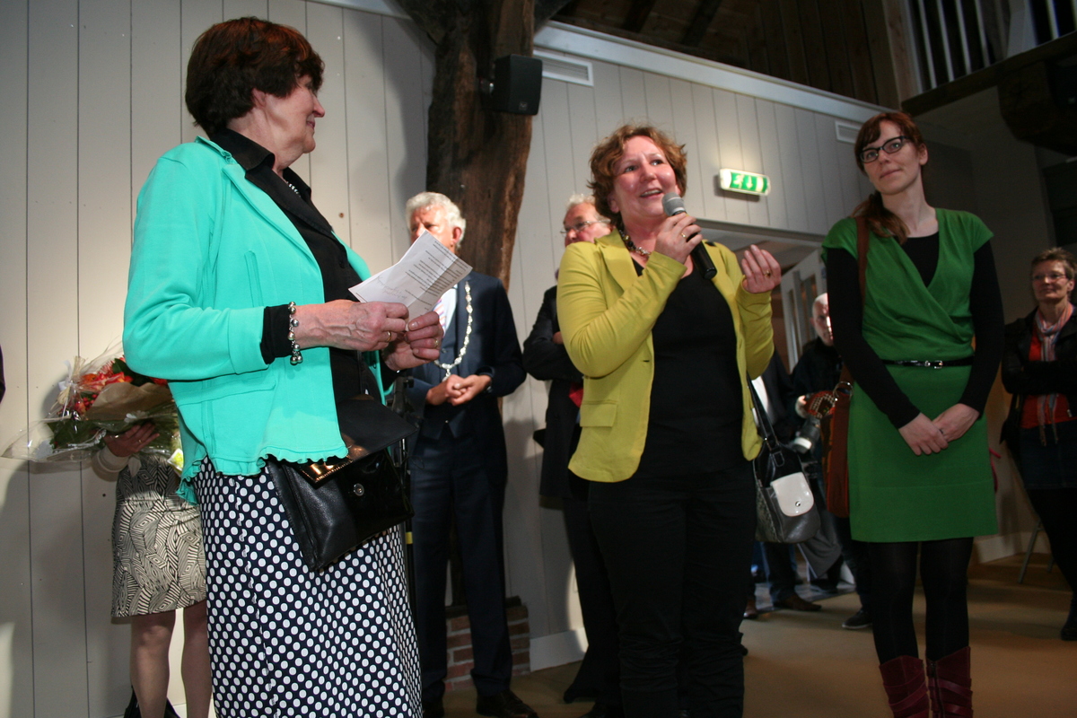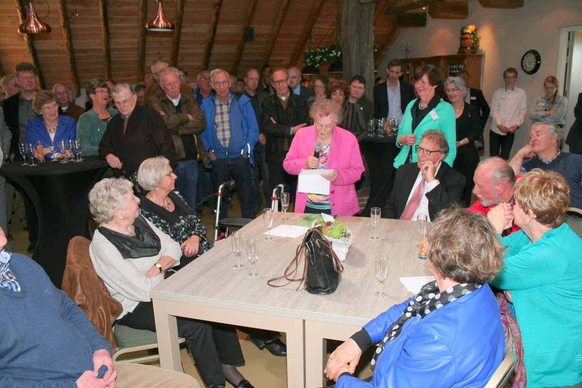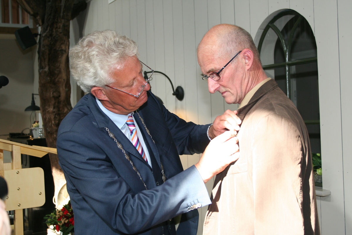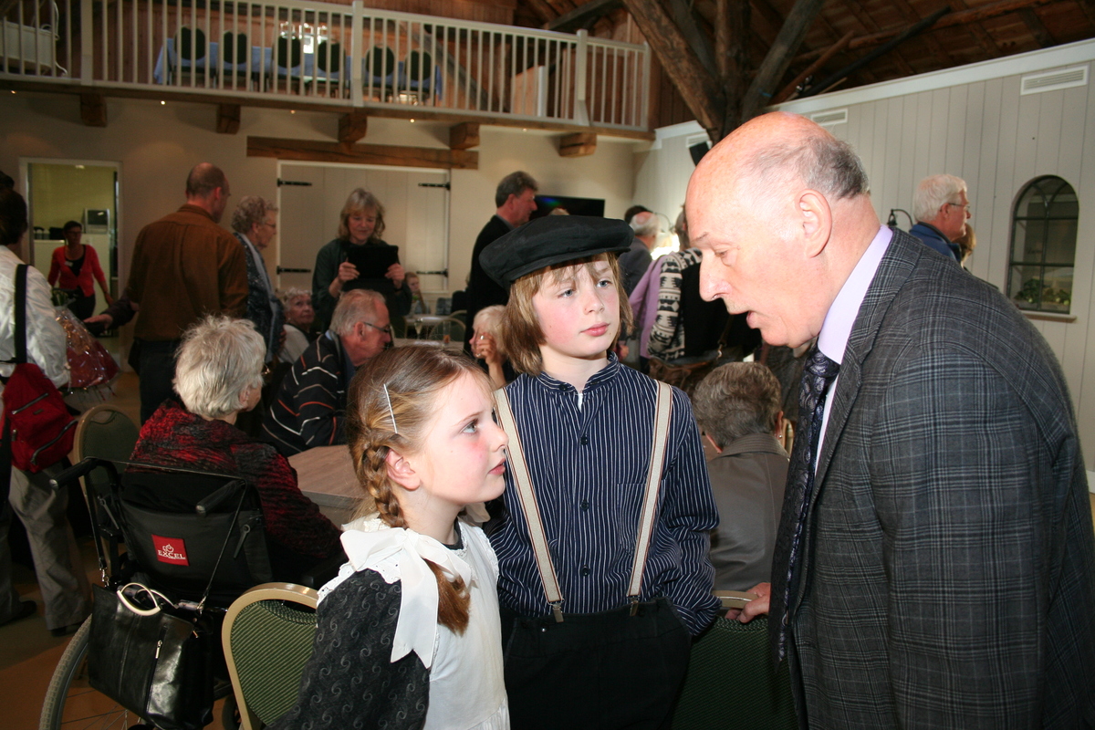 Binnen werd het programma voortgezet met nog meer mooie woorden, de presentatie van het nieuwe boek van Catrien Veeze-Postmus “De mensen die er woonden”, en een verrassing: een Koninklijke Onderscheiding voor Simon Riepma, de penningmeester van Stichting Oudheidkamer Fredewalda en de aanjager van het boerderijproject. Opnieuw mooie woorden, deze keer van burgemeester Berend Hoekstra van Leek.