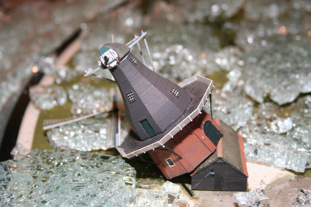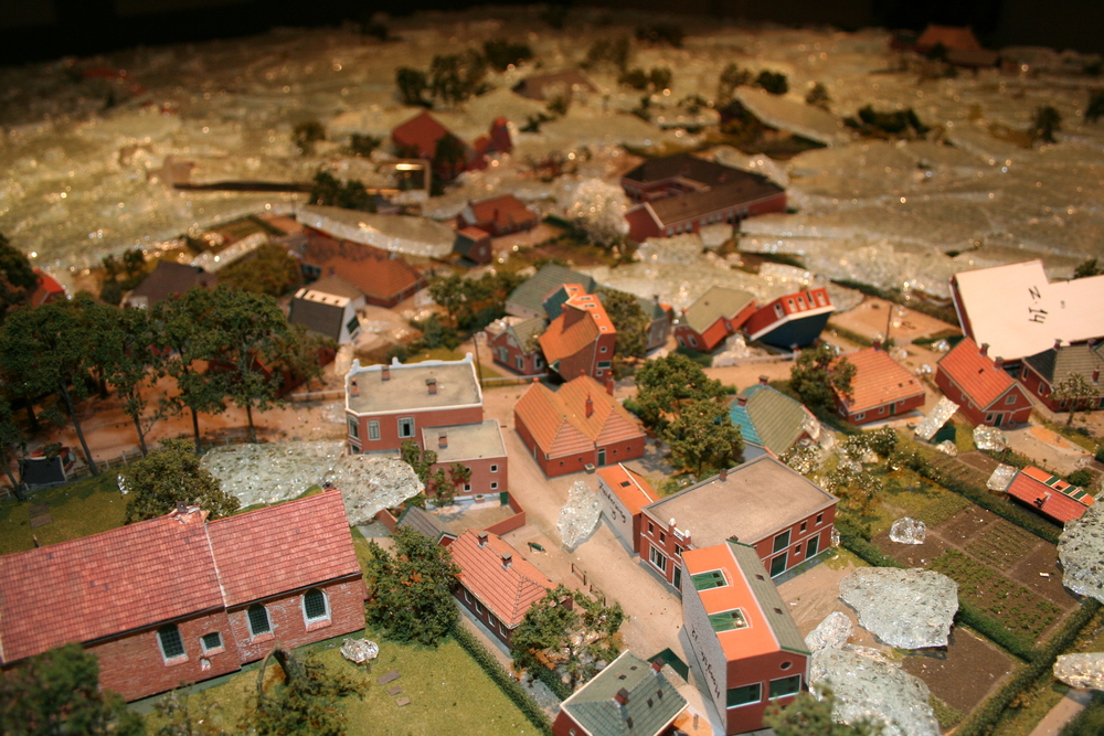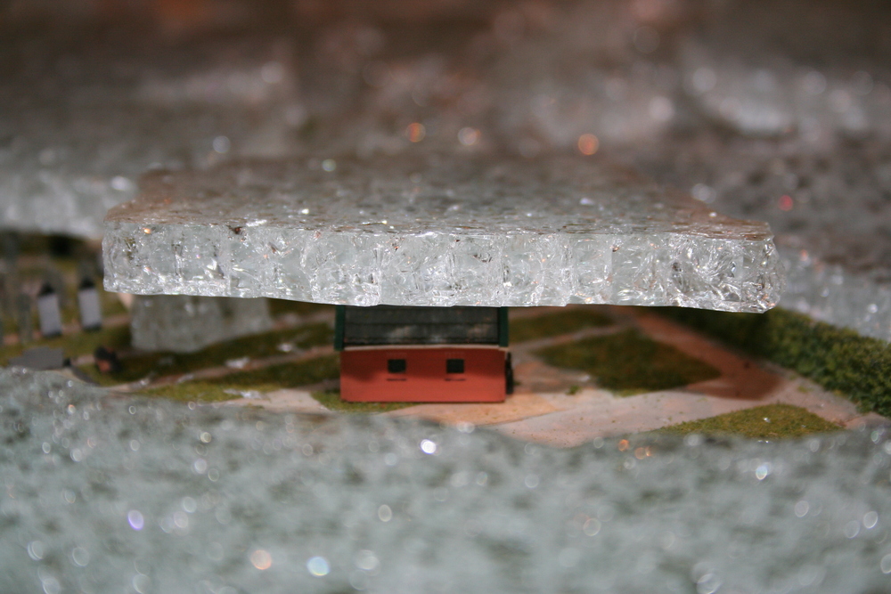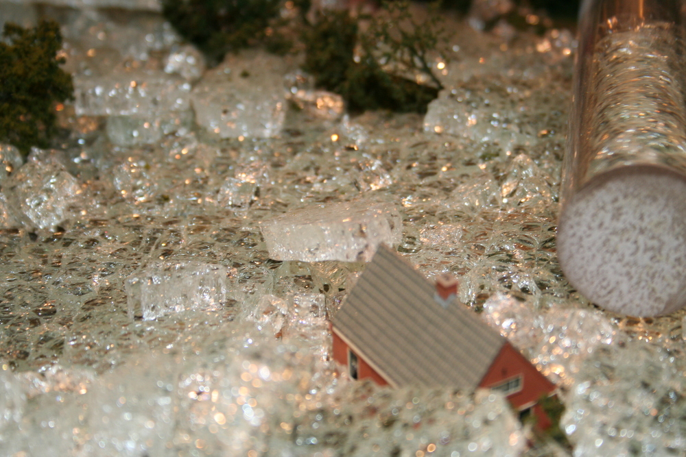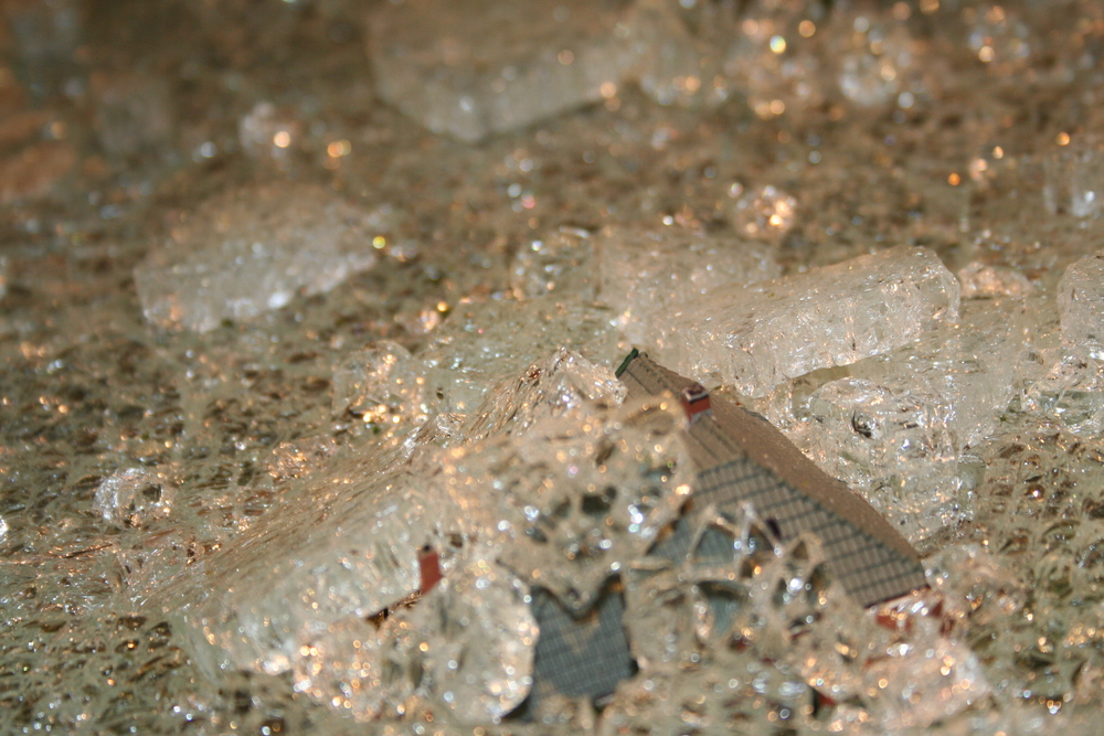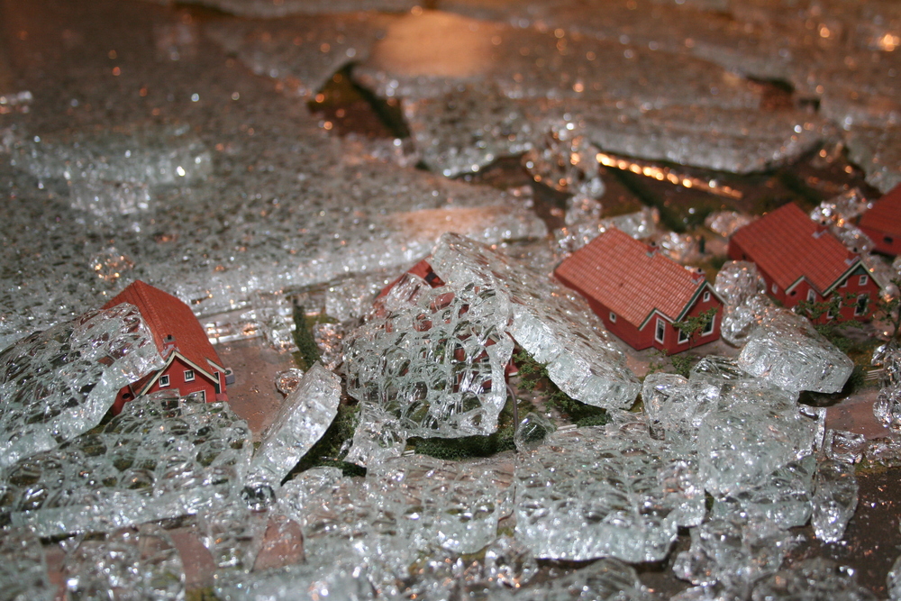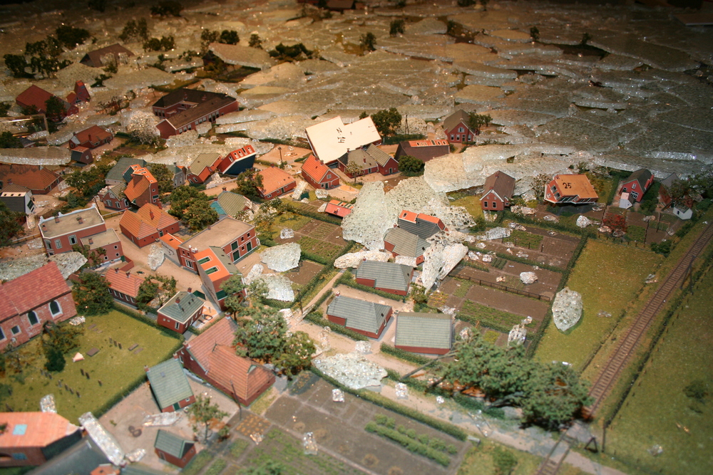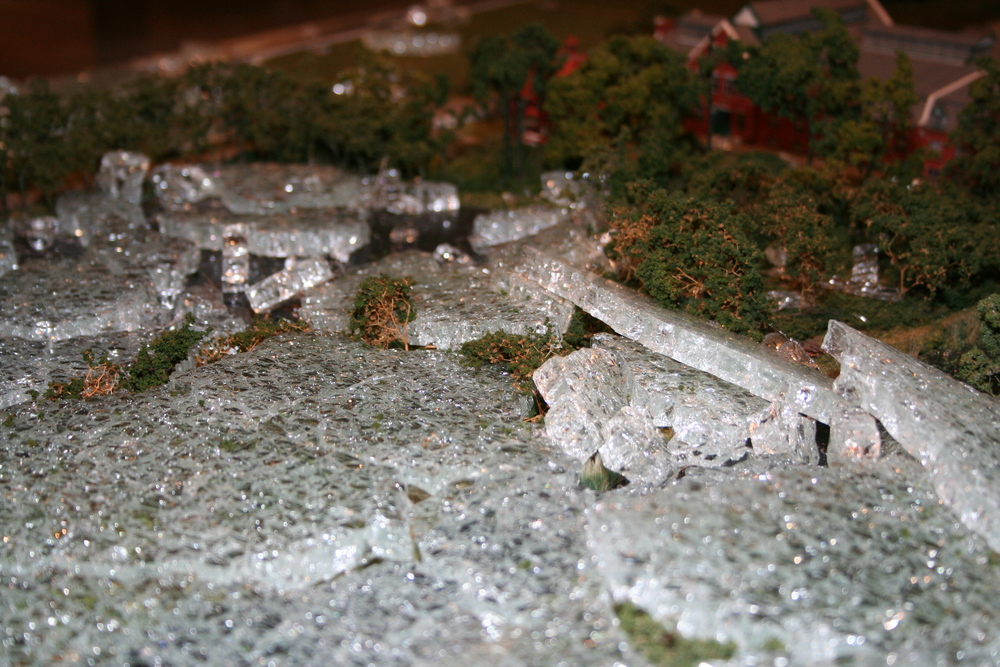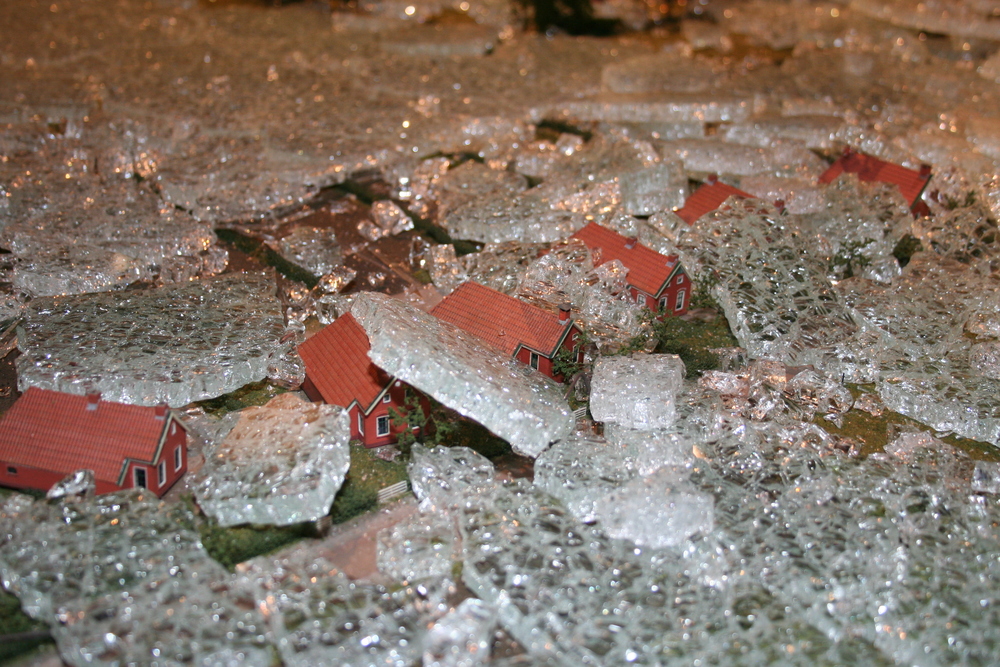 De mensen die in het voorhuis vergaderden hoorden plotseling een harde knal en een aanhoudend brekend geluid. Toen zij in de ruimte kwamen waar de maquette staat opgesteld, werd duidelijk wat er aan de hand was. Ze zagen één grote ravage. Grote delen van de maquette waren bedekt met een laag gebroken glas, die voor een groot deel de panden en de straten bedekten. Veel panden en het groen zijn daardoor beschadigd. Een triest gezicht.