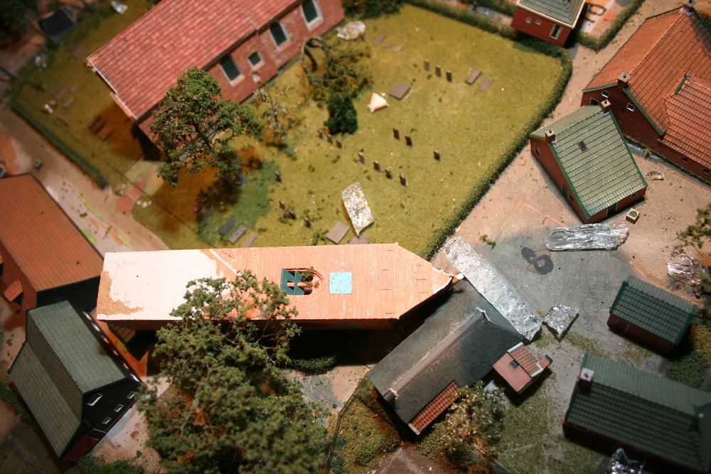 Een verzekeringsexpert zal de schade opnemen, waarna wij hopen de maquette in oude glorie te kunnen herstellen, zodat de expositie volgend jaar april, als gebruikelijk, weer geopend kan worden.