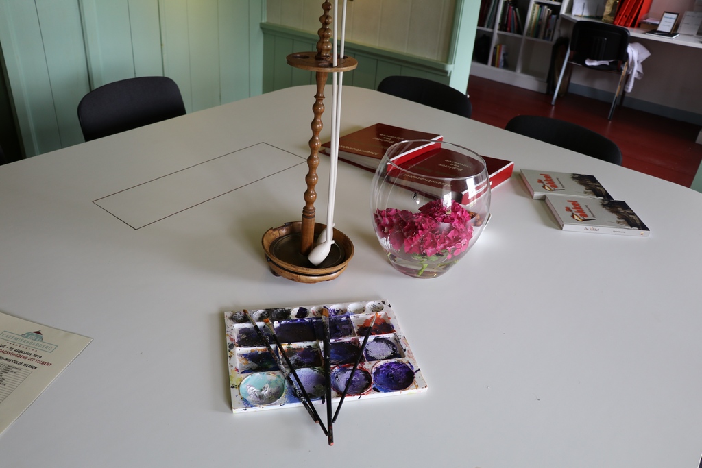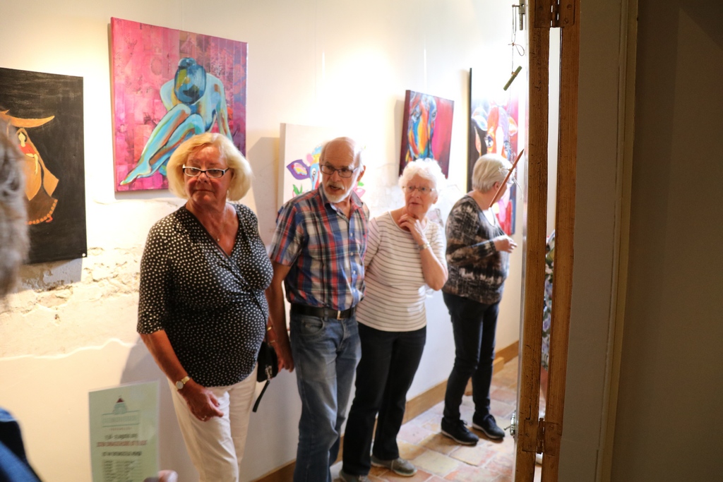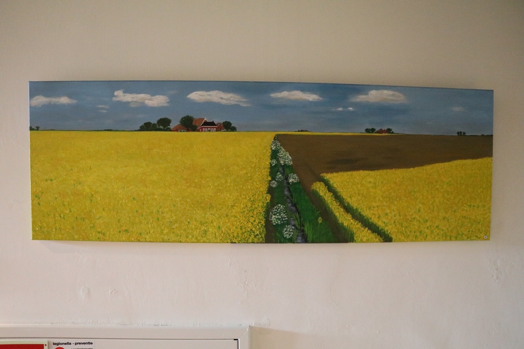 Zestien amateurschilders uit Tolbert laten hun werk zien in het voorhuis van de CazemierBoerderij.