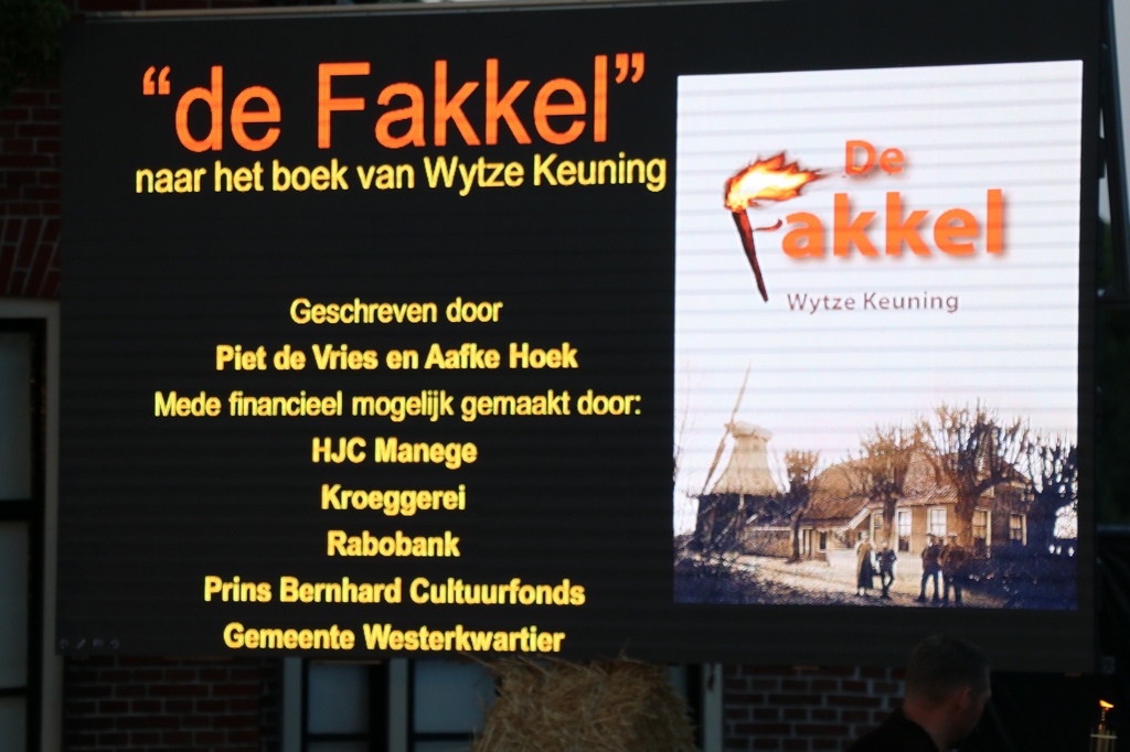 Op zaterdag 22 en zondag 23 juni presenteerde Fredewalda een openluchtspel naar het boek “De Fakkel” van Wytze Keuning. Het boek vertelt een aangrijpend verhaal over het boerenleven in het dorp Tolbert rond de eeuwwisseling (1900). Een bijzonder theaterstuk met veel humor, drama, spanning en spektakel.