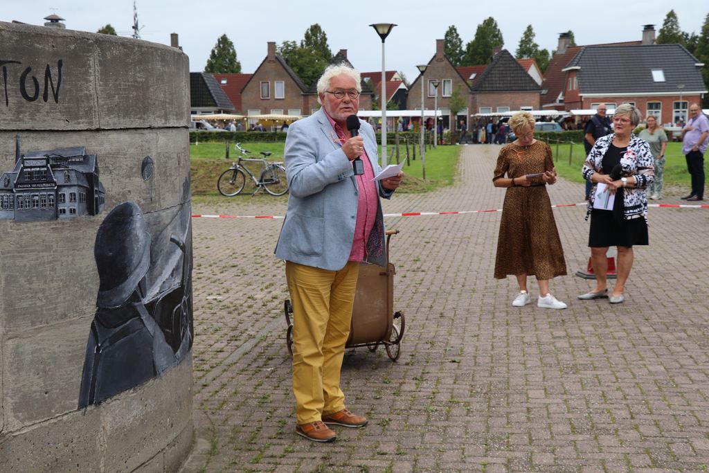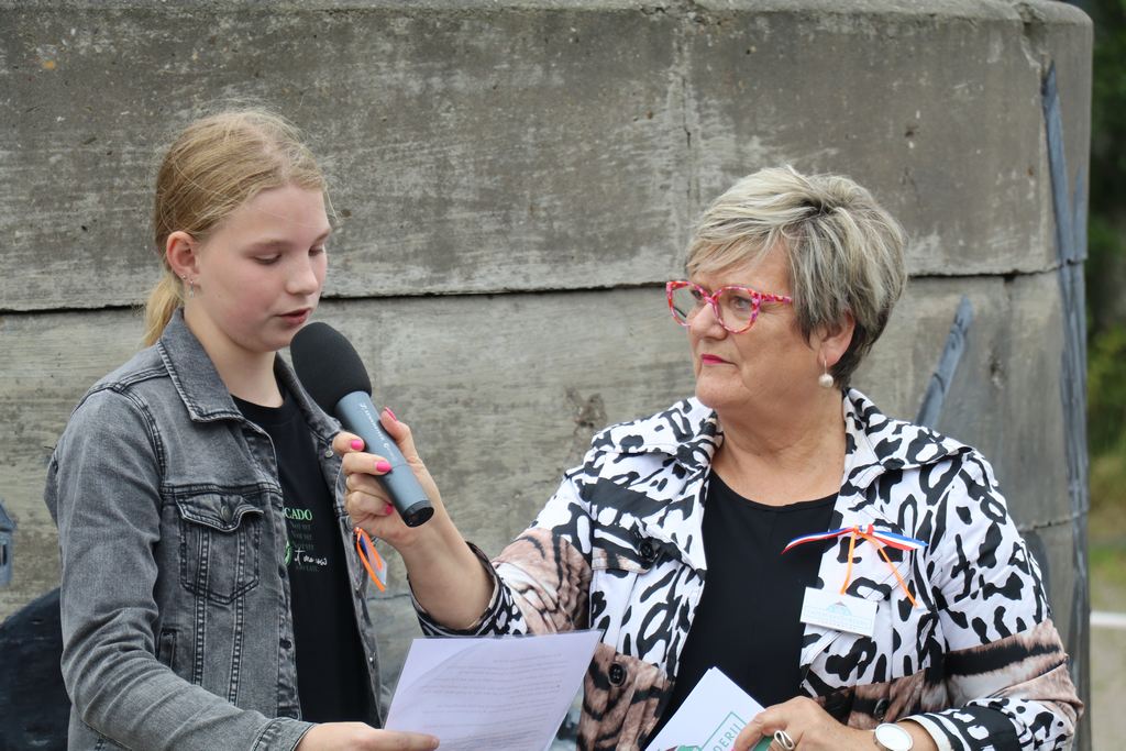 Dionne en Inez van Egmond, twee achterkleindochters van de met fiets afgebeelde Katrijn Huizinga, waren ook aanwezig. Dionne hield een ontroerend verhaal over haar overgrootmoeder, die werd opgepakt vanwege haar illegale verzetsactiviteiten en een afschuwelijk verblijf in Duitsland overleefde.