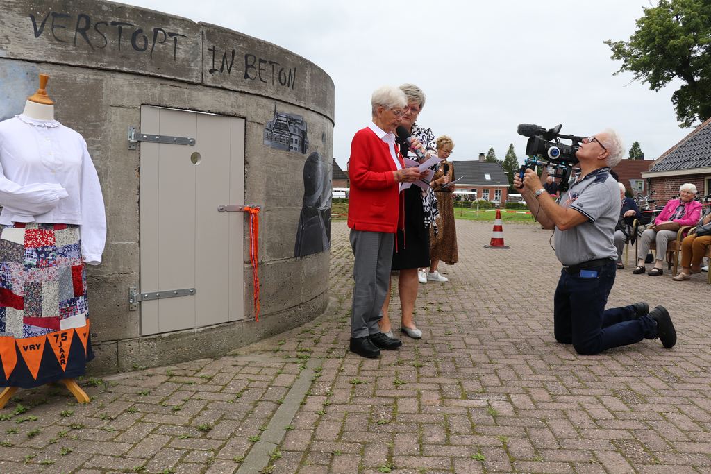 Met een toespraak vol warme herinneringen aan haar verblijf op de boerderij van de familie Cazemier aan Tolbert opende mevrouw Toke van de Vin-Jacobs vorige week woensdag het project “Vrijheid verstopt in beton”. Als Limburgs evacuéetje verbleef ze samen met haar broer Theo enkele maanden op de boerderij, terwijl haar ouders en andere broer en zus elders in het dorp waren ondergebracht. Nog altijd zijn er hechte banden tussen de families en dorpelingen.