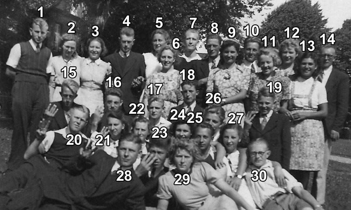 Foto 2: Welke groep is dit, waar is de foto gemaakt, ter gelegenheid waarvan, wanneer, wie zijn de personen op de foto? Klik op de foto voor een vergroting.